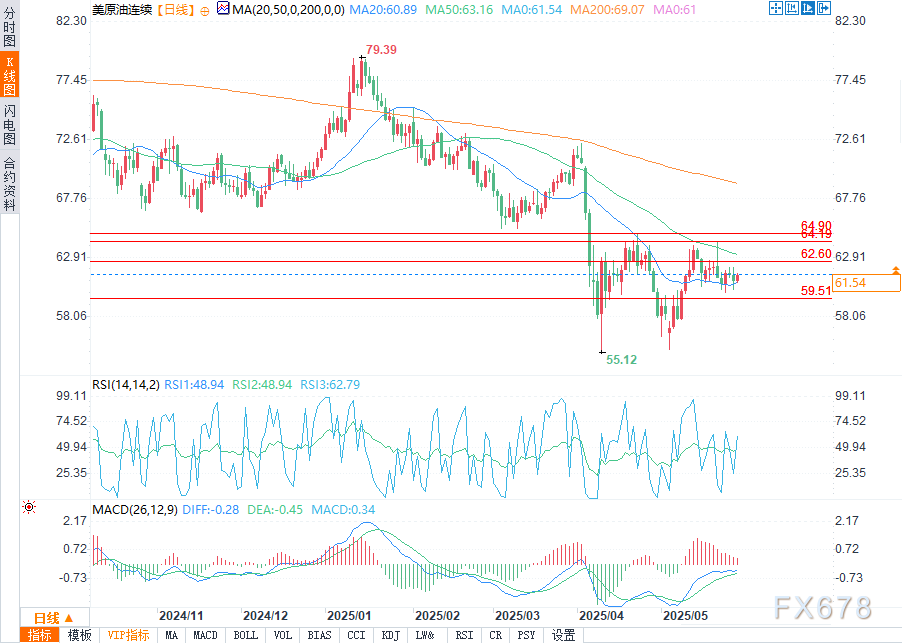 原油期货在附近支点62.59美元为中心的密集阻力位下方盘整。若决定性突破该区域,将为下一个上行目标64.19美元和64.90美元打开空间。下行方面,50%回撤位59.51美元是关键技术支撑位,设定了近期价格波动区间。在突破发生前,交易员应预期价格继续盘整。   尽管欧佩克+可能增产,供应风险仍支撑油价   周三,受地缘政治导致的供应限制影响,油价小幅上涨。美国已禁止雪佛龙公司从委内瑞拉出口原油,限制了该渠道未来的原油流量。在加拿大,野火导致的生产暂停加剧了短期供应担忧。这些风险与市场对欧佩克+可能同意从7月开始增产的预期相互抵消,市场正密切关注这一动向。   周末会谈前欧佩克+产量策略仍不明朗   周三举行了欧佩克+全体会议,但关键决策可能推迟至周六,届时八名核心成员国将召开会议讨论7月生产计划。Rystad Energy的分析师强调,由于非欧佩克+产量停滞和夏季驾驶季节需求上升,对欧佩克+原油的需求增强。高盛预计,由于新项目投产、需求增长疲软和库存上升,该组织将在7月增产,但之后保持产量稳定。   地缘政治增加看涨潜力   如果美伊之间的外交进展持续,市场情绪可能进一步改善。周三,伊朗核事务主管表示,可能允许美国核查人员进入核设施,但需以与华盛顿的谈判成功为前提。任何地缘政治风险的降低或伊朗原油出口的恢复都可能对全球供应平衡产生重大影响。   看涨格局等待技术突破