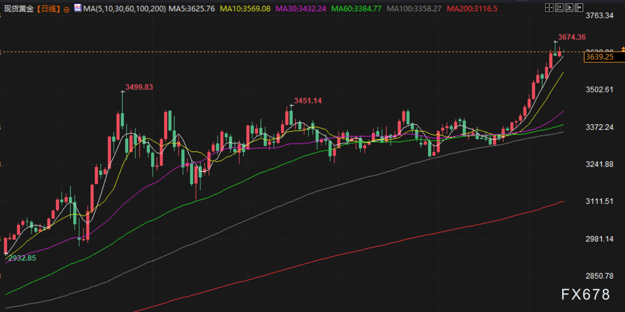 现货金报每盎司3647.94美元,上涨0.6%,周二创下3673.95美元的纪录新高。12月交割的美国期金结算价持平于3682美元。 美国劳工部数据显示,受服务价格下降影响,8月美国生产者物价指数(PPI)意外环比下跌。 City Index 和 FOREX.com 市场分析师 Fawad Razaqzada 称:"美国数据的任何进一步疲软都会继续支撑黄金,预计年底之前可能会有两次以上的降息。“今年迄今,黄金已经大涨逾 39% 。 根据芝商所(CME)的FedWatch工具,市场认为美联储在9月16-17日的会议上降息25个基点的可能性为90%,也有很小的可能性会降息幅度更大。现在,人们的注意力转向周四的消费者物价指数(CPI),这将是影响美联储政策立场的关键因素。 上周的非农就业报告疲软,暗示劳动力市场状况降温,这强化了市场对放松政策的信心。劳工部还下调了截至3月的就业增长估计,暗示在美国总统特朗普对进口商品征收激进关税之前,就业增长已经放缓。 与此同时,一名联邦法官周二暂时阻止了特朗普罢免美联储理事库克的企图,这是白宫在一场威胁到美联储独立性的法律斗争中遭遇的早期挫折。 现货白银上涨 0.8%,至每盎司 41.21 美元。铂金上涨1.7%,至1391.80美元;钯金 上涨近3%,至1180.81美元。 油市 油价周三收高,每桶上涨超过1美元,因投资者担心波兰在其领空击落无人机后可能出现供应中断,且美国推动对俄罗斯石油买家实施新的制裁,但美国库存增加的报告抑制了涨幅。